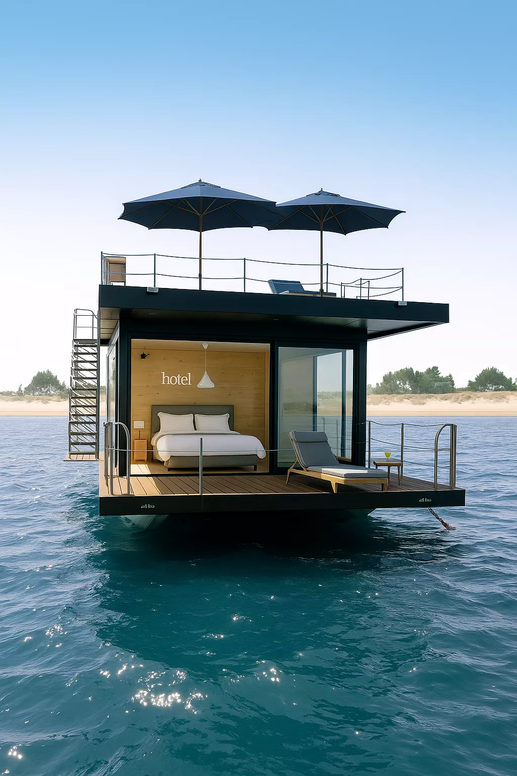 Installed on calm waters, lakes, canals, rivers or marinas. SEATY Resort modules can stand alone or be combined. Fully autonomous or connected, they feature panoramic views, a wooden terrace and tailored interiors for an unforgettable stay.
